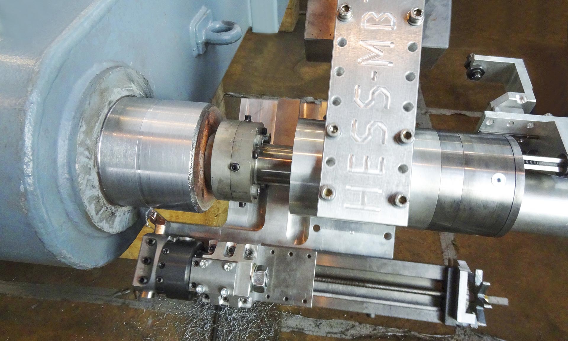 Bei Durchmessern von bis zu 300 mm muss eine Gewindebohrung M16, M20 oder M24 in die Planfläche eingebracht werden, um die Maschine zu befestigen, auszurichten und anschließend den Wellenzapfen zu überdrehen.